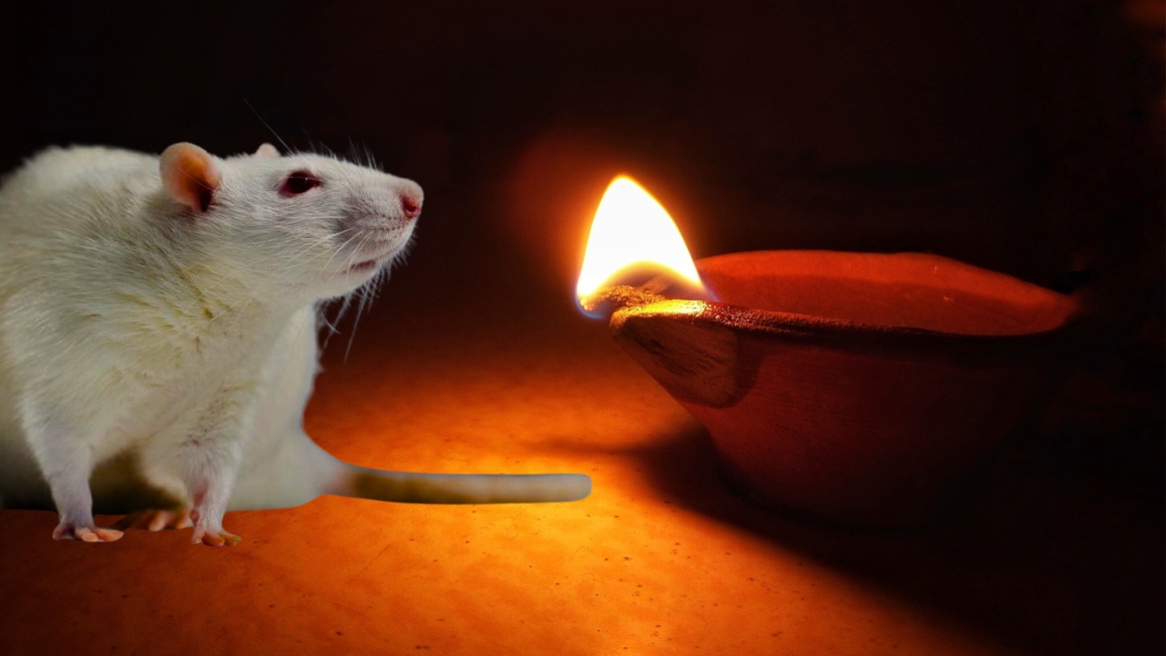 In the temple there are many lamps burning that require adjustment of the wick to keep alight. Once, a rat, thinking the wick was food, touched it with its mouth, inadvertently adjusting it so that the flame could continue to burn without being extinguished. Surprisingly, this simple act of service to the temple brought spiritual liberation to the rat.